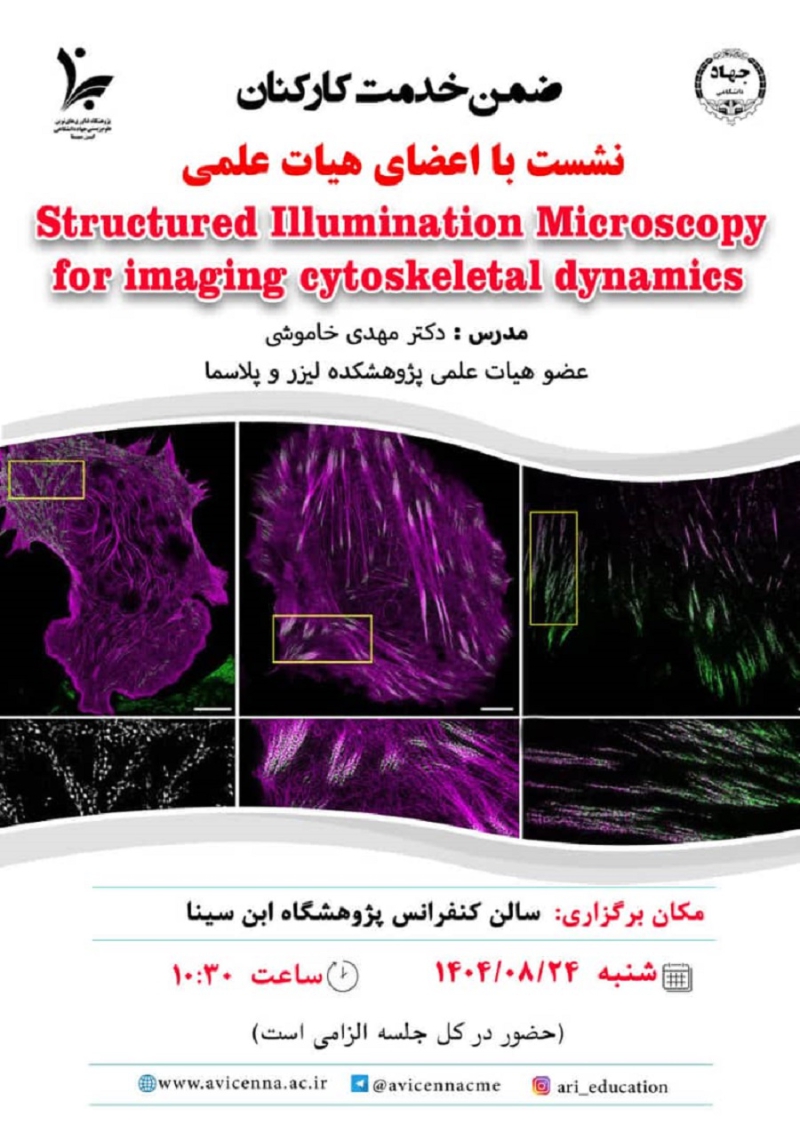 دوره ضمن خدمت کارکنان با عنوان "نشست با اعضای هیأت علمی Structured Illumination Microscopy for imaging cytoskeletal dynamics"