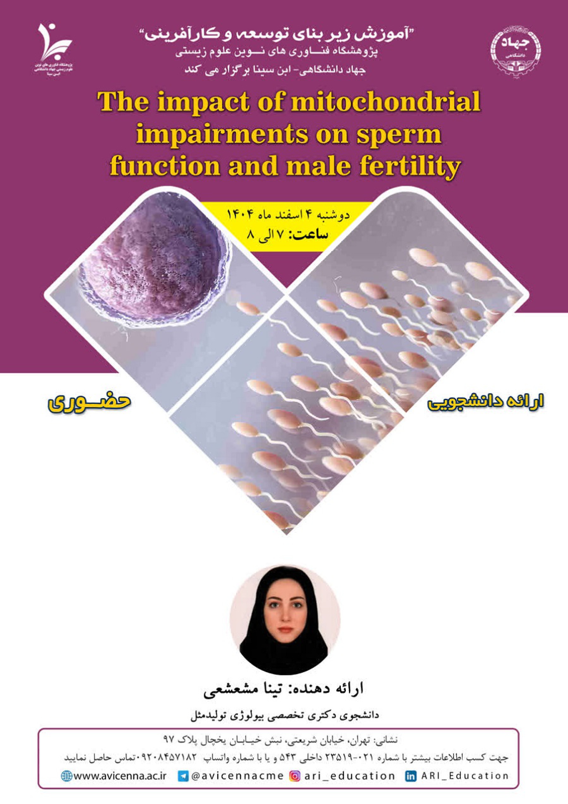 ارائه دهنده: سرکارخانم تینا مشعشعی (دانشجوی دکتری تخصصی بیولوژی تولیدمثل)